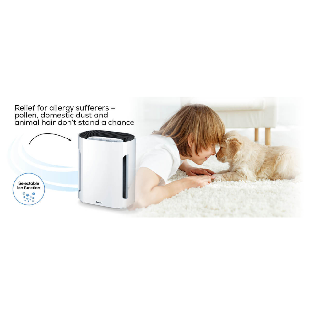 Ο Beurer LR200UK είναι ένας συμπαγής αλλά ισχυρός καθαριστής αέρα που χρησιμοποιεί ένα σύστημα φίλτρων αέρα τριπλής δράσης για να καθαρίσει τον αέρα στο σπίτι σας από τους ρύπους εσωτερικού χώρου, όπως τα σωματίδια οικιακής σκόνης, τα επιβλαβή αέρια, τις οσμές, τα βακτήρια και τη γύρη.