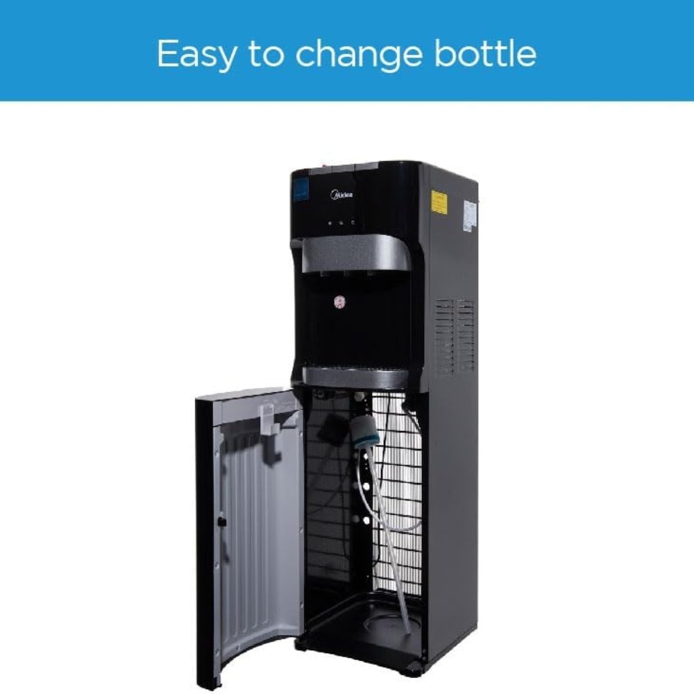 To ψυγείο νερού MIDEA, με ενσωματωμένη αντλία νερού, διαθέτει πιεζόμενους διακόπτες με λειτουργία ασφαλείας για παιδιά στον έλεγχο ζεστού νερού, δεξαμενή νερού από ανοξείδωτο χάλυβα και ένδειξη άδειας φιάλης. Επιπλέον, διαθέτει ενσωματωμένη αντλία στο κάτω μέρος. Είναι εύκολο να ξαναγεμίσεις με ελάχιστη προσπάθεια, απλώς σύνδεσε το μπουκάλι, σπρώξε το μέσα και ξεκίνα να γεμίζεις το ποτήρι σου με φρέσκο νερό.