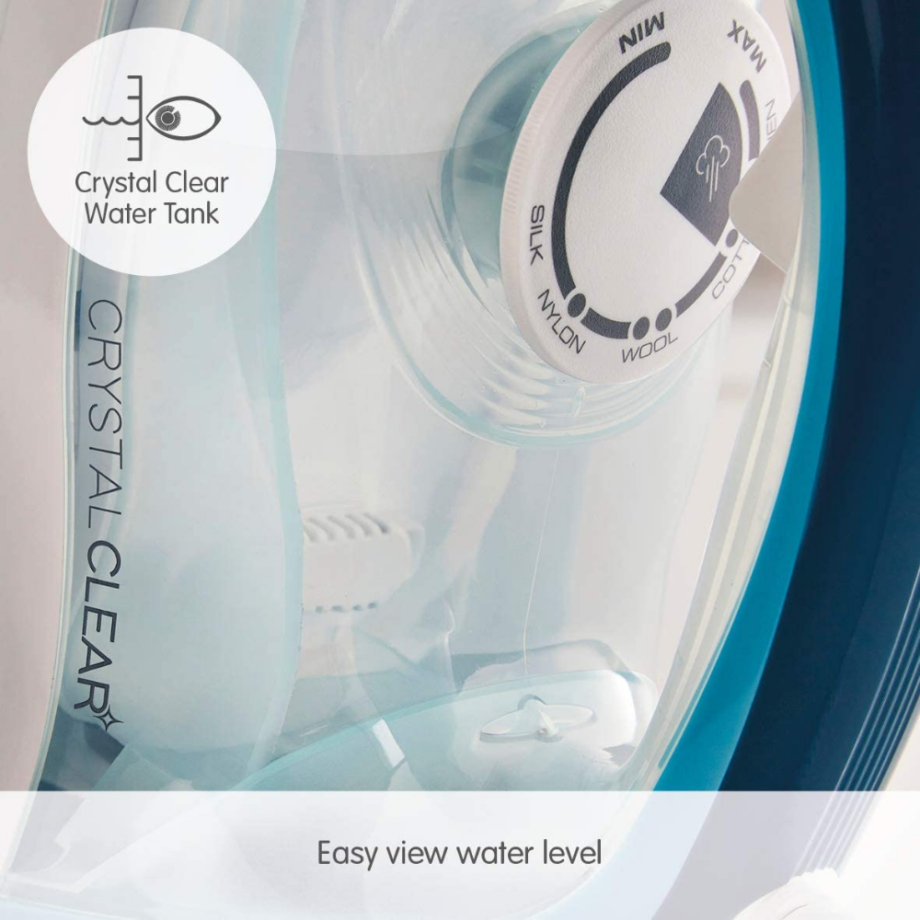 Το σίδερο ατμού Morphy Richards Crystal Clear Steam διαθέτει διαφανές δοχείο νερού, καθιστώντας τη στάθμη του νερού εύκολα ορατή, ώστε να είναι λιγότερο πιθανό να ξεμείνετε από νερό. Το μεγάλο καπάκι πλήρωσης καθιστά εύκολη την αναπλήρωση της στάθμης του νερού και βοηθά στην αποφυγή διαρροών, ενώ το βολικό κλιπ καλωδίου βοηθά στη διατήρηση του καλωδίου στη θέση του όταν το σίδερο δεν χρησιμοποιείται. Επιπλέον, διαθέτει κεραμική σόλα ακριβείας για να γλιστράει πάνω σε όλα τα υφάσματα και να φτάνει σε αυτές τις δυσπρόσιτες περιοχές.