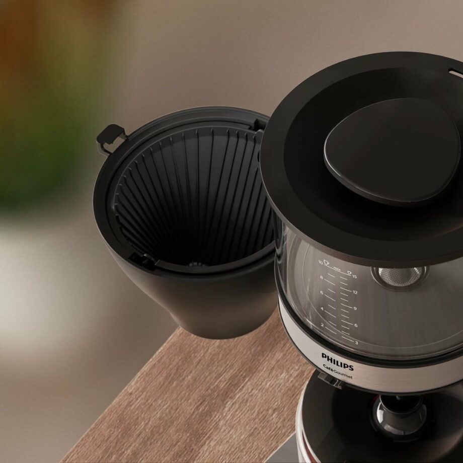 Η Philips Café Gourmet είναι η ιδανική επιλογή για τους λάτρεις του αυθεντικού καφέ φίλτρου. Διαθέτει την καινοτόμο τεχνολογία Boil & Brew, όπου το νερό βράζει στους 100°C πριν πέσει στον αλεσμένο καφέ, εξασφαλίζοντας εκχύλιση στους ιδανικούς 93°C, για εξαιρετικό αποτέλεσμα.