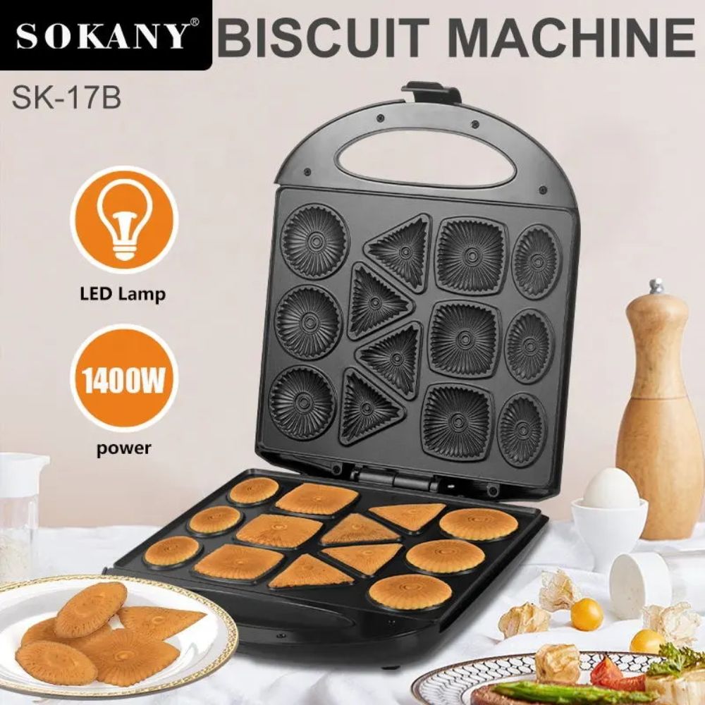 Ετοιμάστε εύκολα και γρήγορα λαχταριστά μπισκότα με τη μηχανή Sokany. Με ισχύ 1400W, αντικολλητική επίστρωση και compact σχεδιασμό, είναι ιδανική για κάθε κουζίνα.